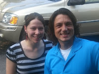 Rachael, my assistant, and I in front of the space (see what I mean by it being a really "blue" shirt lol)